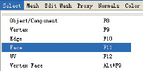 菜单Slelect→Face(如图1-29所示)。