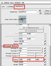 切换视图为Side,按照上面讲述的方法导入图片“AK47参考图01”。选中图片,用键盘的快捷键Ctrl+A展开右侧的属性面板,选择选项卡ImagePlane1(影像平面),将PlacementExtras(额外放置参数)菜单下Center(中心)后的三个数值全部归零,如图3-5所示。