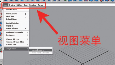 做好建模前的准备工作,首先要将图片导入Maya视图中。导入图片到Maya视图有一种最为直接、快捷的方法:在Maya视图菜单下View(视图)→Image Plane(映像平面)→ImportImage(导入图片),如图3-4所示。