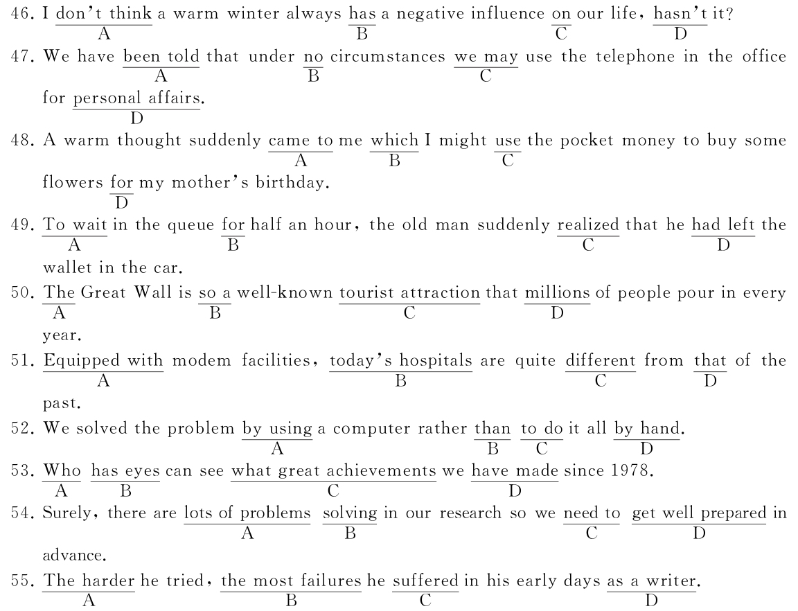 (注:样题为2010年11月6日北京地区成人本科学士学位英语统一考试试题A)