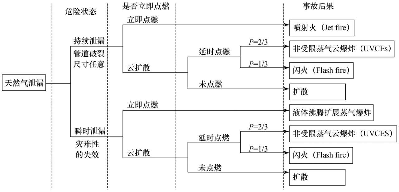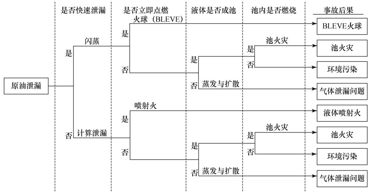 采用事件树分析的目的是为了识别复杂工艺过程可能发生的各种事故,进而将可能发生的事故的全过程以树图的形式反映出来。因此,事件树分析尤其适用于多种环节事件或多重保护系统的风险分析。