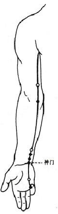 我教给大家一个穴位,安神、宁神的穴位。所谓安神,就是让自己的心神觉得安全,没危险;所谓宁神,就是让心神回到自己心中,不要心神外越,在外面瞎跑,就像开门把孩子接回家。这个穴位叫神门穴,是手少阴心经的原穴和输穴,位置在手腕上,一握拳,手腕上就出现了一条肌腱,肌腱的内侧拐角与掌腕横纹第一道线交叉的位置,在这个窝里,手放进去能感觉到动脉的跳动,睡不着觉的时候可以去点一点这个穴,感觉到酸麻胀痛时,效果最好。