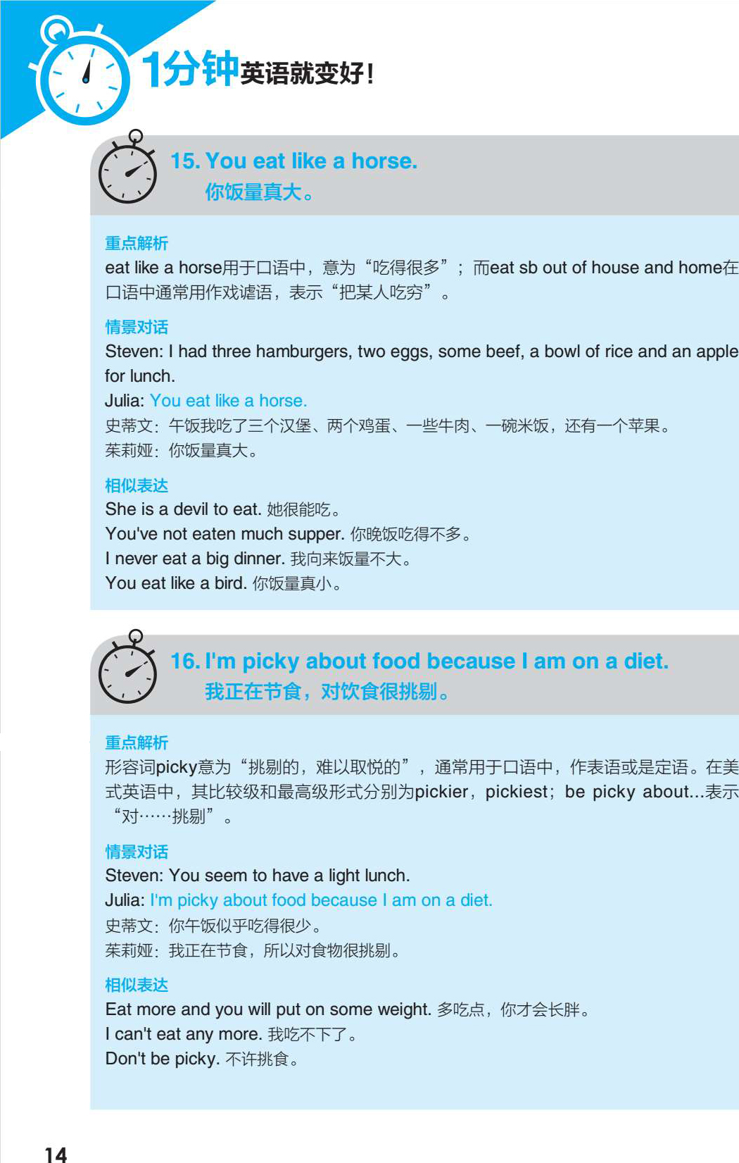 每个核心句型都附有“相似表达”,围绕核心句型,收录相关口语表达,不拘于单一句式,方便读者在特定场景中,举一反三,灵活运用。