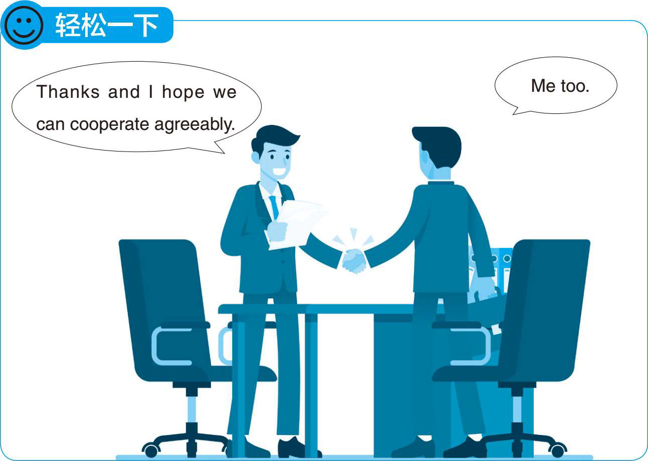 ② Glad to hear from you意为“很高兴接到您的电话”,它还有“很高兴收到您的来信”的意思,这是口语用语,若是书面语的话需要在glad前加上I'm。
