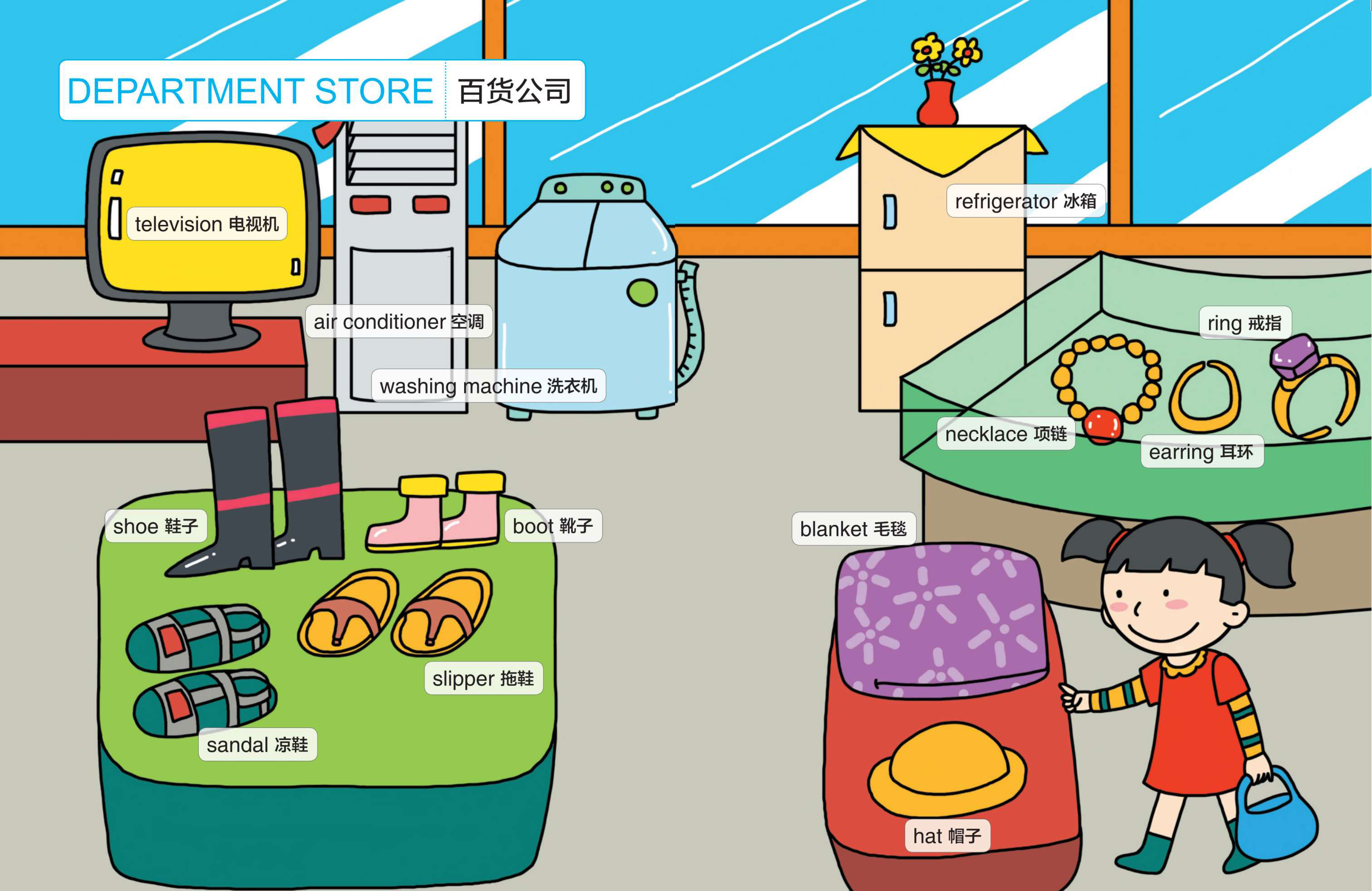department store [dɪ'pɑ:tmənt stɔ:] 百货公司