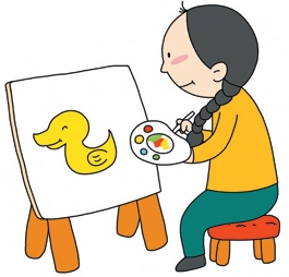 玛丽画了一只黄色的鸭子。