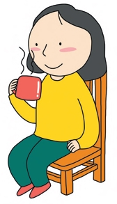 The teacher drinks a cup of tea.