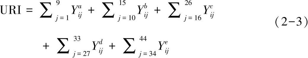 变量集聚是简化城市休闲化评价指标体系(Urban Recreationalization Index,简称URI)的有效手段,即指数大小不仅取决于独立变量的作用,也取决于各变量之间形成的集聚效应。非线性机制整体效应的存在,客观上要求经济与产业发展(EI)、交通设施与安全(TS)、休闲服务与接待(SH)、休闲空间与环境(SE)、休闲生活与消费(LC)全面协调发展,产生协同作用。
