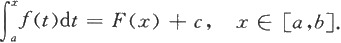 设函数f在[a,b]上可积,则对于任意给定的x∈[a,b],f在[a,x]上可积,于是定积分
