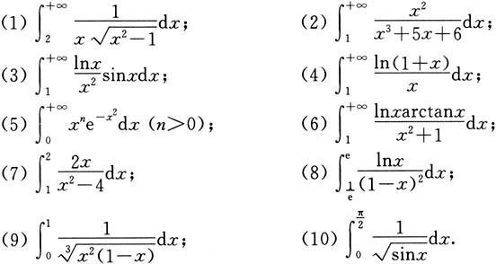 20.计算下列无限区间上的广义积分(发散也是一种计算结果):