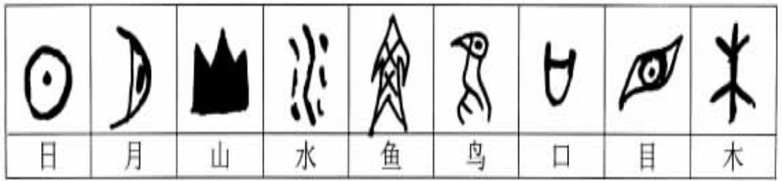 文字起源于图画。因此,汉字系统里最基本的构形方法是直观构形法。造字者通过视觉所观察到的对象直接用类似简笔图画的方式描绘出来,传统的“六书”理论称之为“象形”,这应当是最早出现的造字方法。用象形的方法所造的字,主要涉及人最容易直接感知到的事物,包括人体、动物、植物以及其他自然物体,如:日、月、山、水、鱼、鸟、口、目、木。