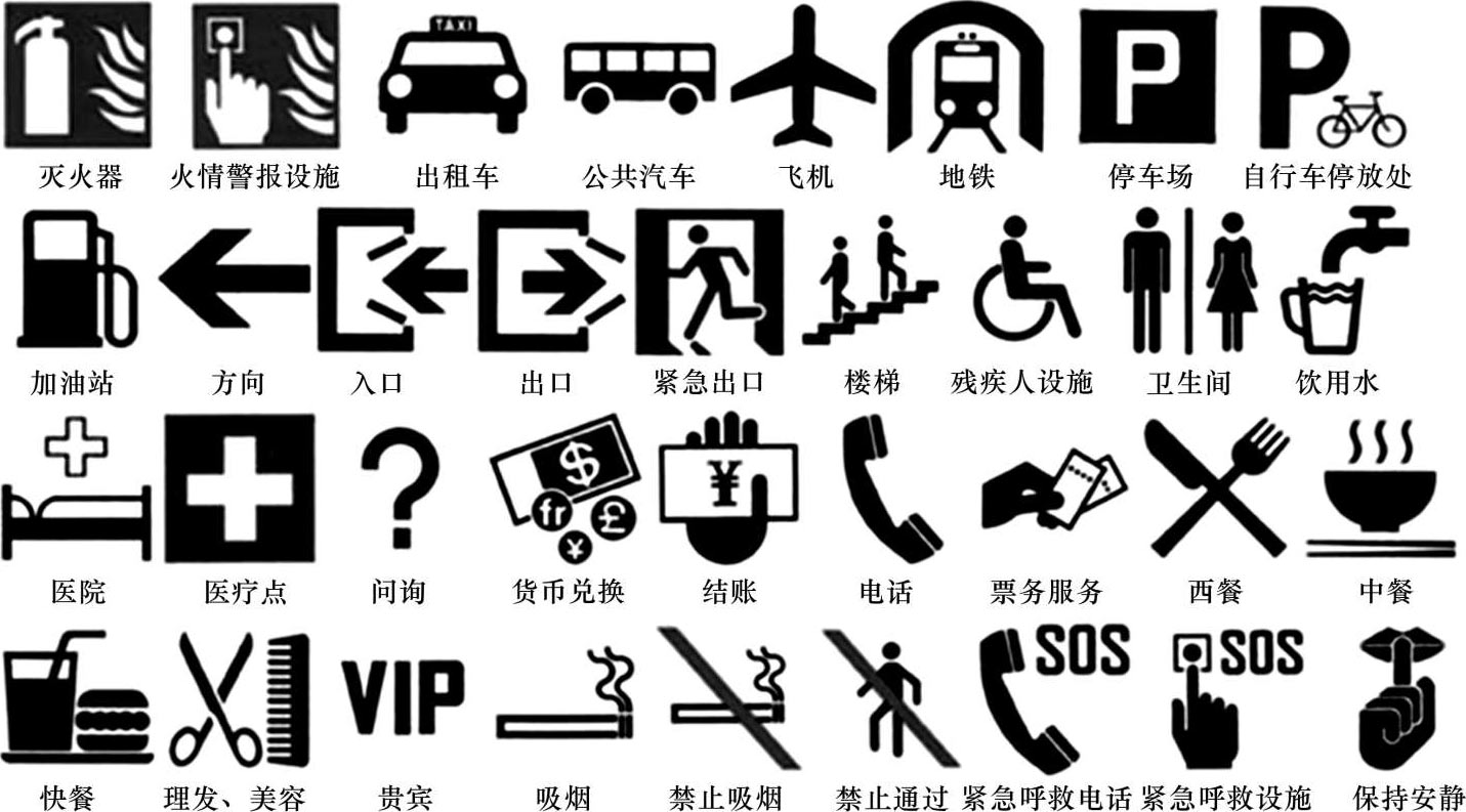 图形符号标准化在我们生活中随处可见,我们可在各种家用电器上看到用图形符号表示的操作方法;在衣物上看到用图形符号表示的洗涤方法;在学校和工作单位,可接触到用图形符号表示的办公设备操作方法,标在地图、图纸上和技术类专业书籍中的符号,以及工作场所使用的安全标志等;在公共场所,我们经常可以看到提供导向信息的图形符号以及交通标志。