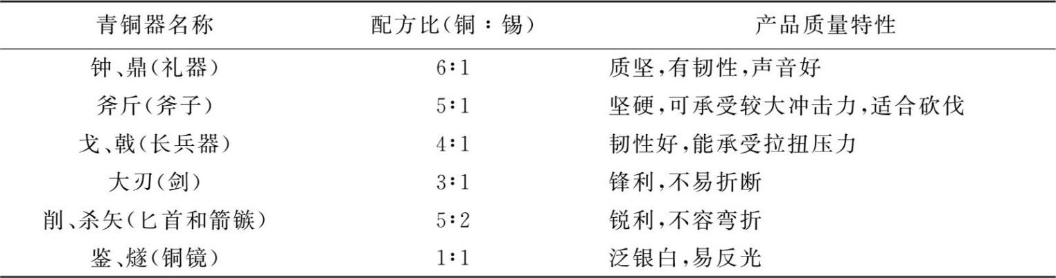 表1.1 《周礼·考工记》中青铜器含铜、锡的比例表