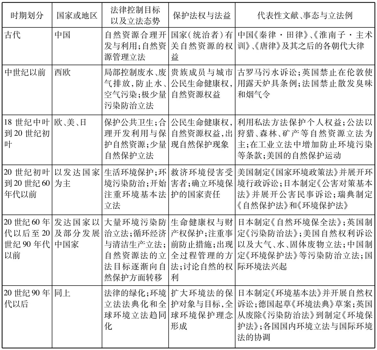 我国环境法学者在其环境法著作中对于世界各国环境法发展历史的阶段划分,也因为对环境问题的认识,对环境法目的、概念的理解以及对国外环境法学资料的收集整理等的看法不同而存在着一些差异。