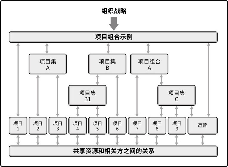 图1-2 项目组合、项目集、项目与组织战略的例子