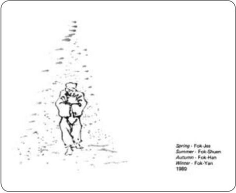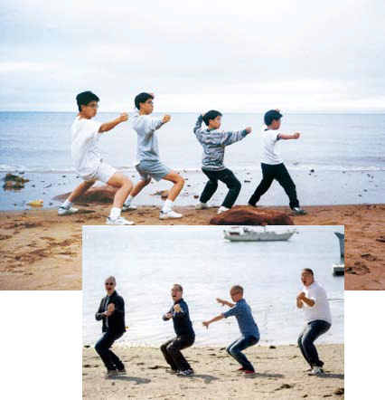 1989年全家到加拿大爱德华太子岛旅游,学过武术的四兄弟面对大西洋海滩“打功夫”(上图);二十三年后,全家到美国西雅图旅游,四兄弟面对太平洋再次“打功夫”(下图为Steve Horn摄)。