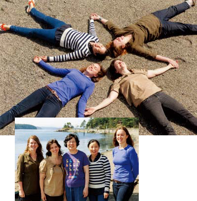 四个媳妇,头对头,手牵手,就像一朵花(上图)。四个媳妇与四男的妈妈在一起(下图)。Steve Horn摄于2012年。