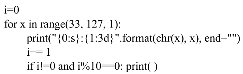 对于给定的ASCII值可以使用Python内置函数chr()求出相应的字符;对于给定范围内的ASCII值,可以通过调用range()函数来生成一个数值序列,然后使用for循环来遍历这个数值序列。