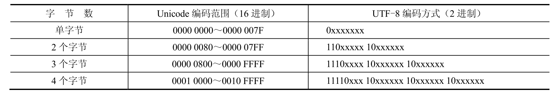 从Unicode编码到UTF-8编码的转换规则详见表3-1。