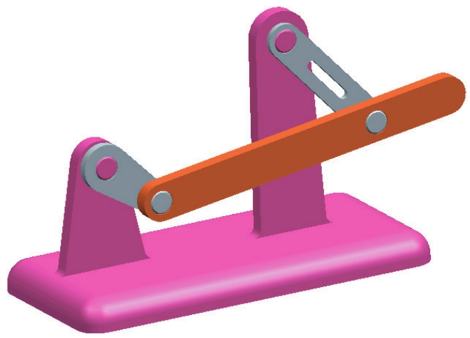 下面以图2.1.1所示的连杆机构模型为例,介绍使用UG NX 12.0进行机构运动仿真的详细流程。该机构的运行状况在本书第1章的内容中已有简介。由于本章内容具有连贯性,请读者合理安排学习时间。