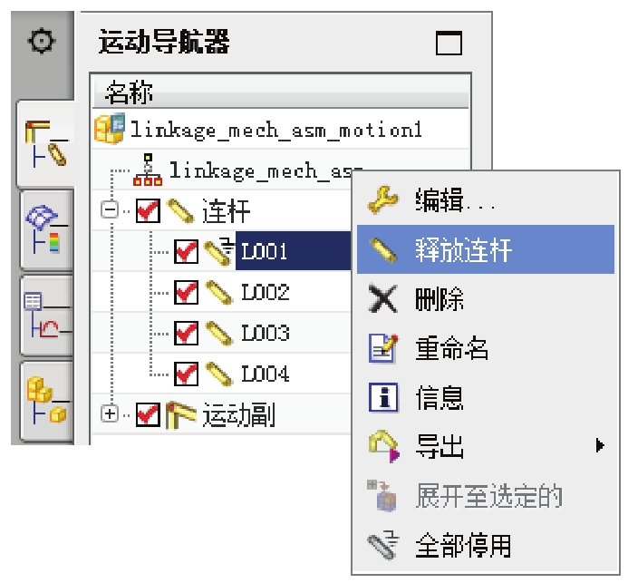 图2.4.4 快捷菜单中的“释放连杆”命令