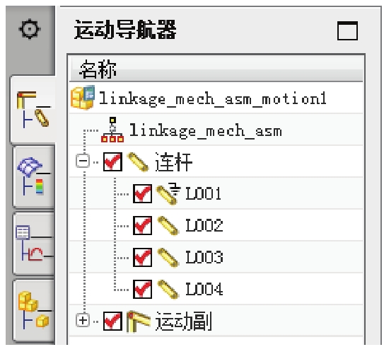 ● 连杆定义完成后,“运动导航器”界面如图2.4.3所示。