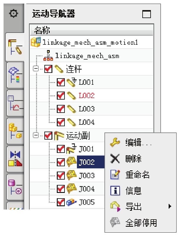 ● 在任一运动副节点上右击,在系统弹出的快捷菜单中选择