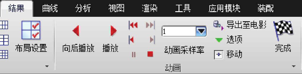 ● 完成解算方案的求解后,在图2.8.2所示的“结果”功能选项卡“动画”区域中单击“播放”按钮