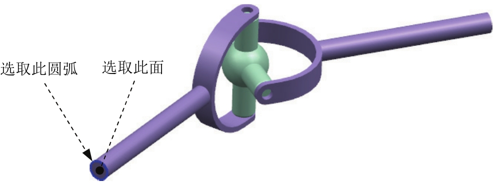 选项,在模型中选取图4.6.2所示的圆弧为原点参考;在