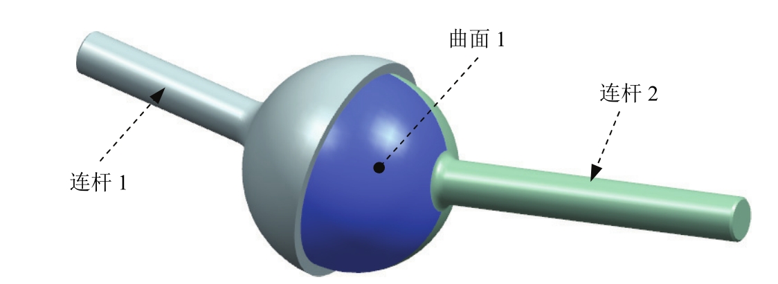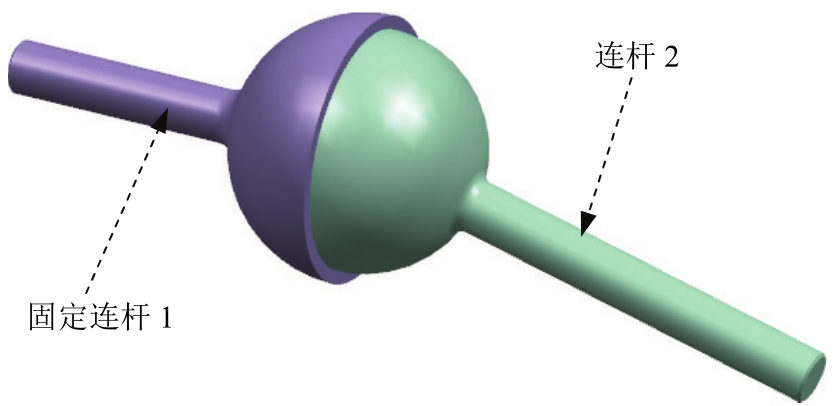 球面副常用在球和铰套的机构仿真中,它可以使两个连杆绕某点进行旋转,提供 3 个旋转自由度。在定义球面副时,只需定义连杆和原点即可,球面副不能定义运动极限也不能作为驱动。