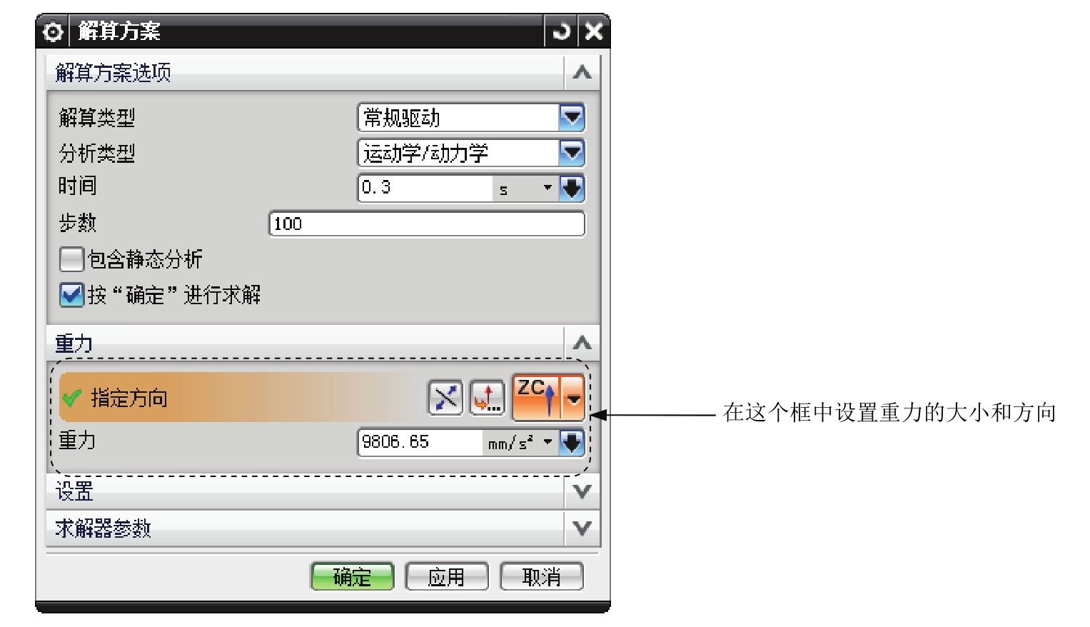 选项,其他重力参数按系统默认设置值,如图4.8.2所示。