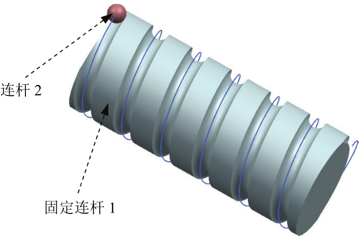 下面举例说明点在线上副的创建过程,在图4.9.1所示的机构模型中,已经创建了一组仿真文件并定义了固定连杆1和连杆2,本例模拟的是圆球(连杆2)在重力的作用下沿螺旋线下落的过程。