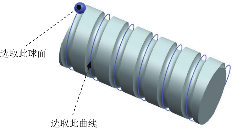 选项,在模型中选取图4.9.3所示的球面为原点参考。