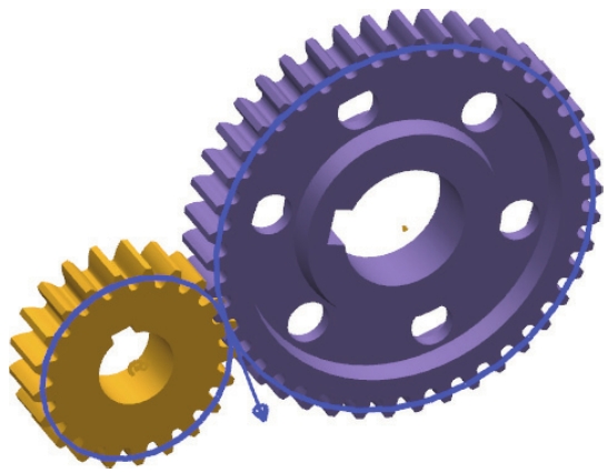 下面说明创建齿轮机构的一般过程,图5.1.1所示是齿轮传动模型,小齿轮为主动轮,大齿轮为从动轮,传动比为0.5。