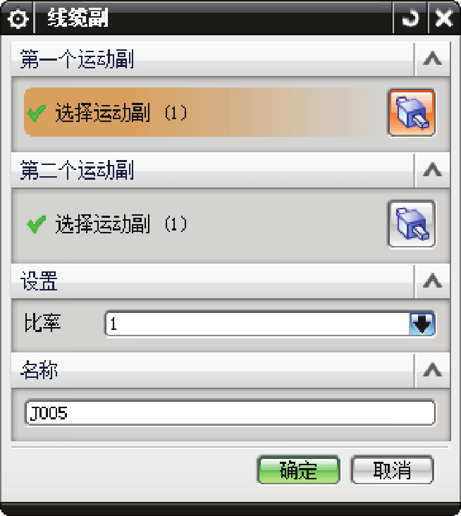 按钮,选取旋转副J003为第二个运动副。