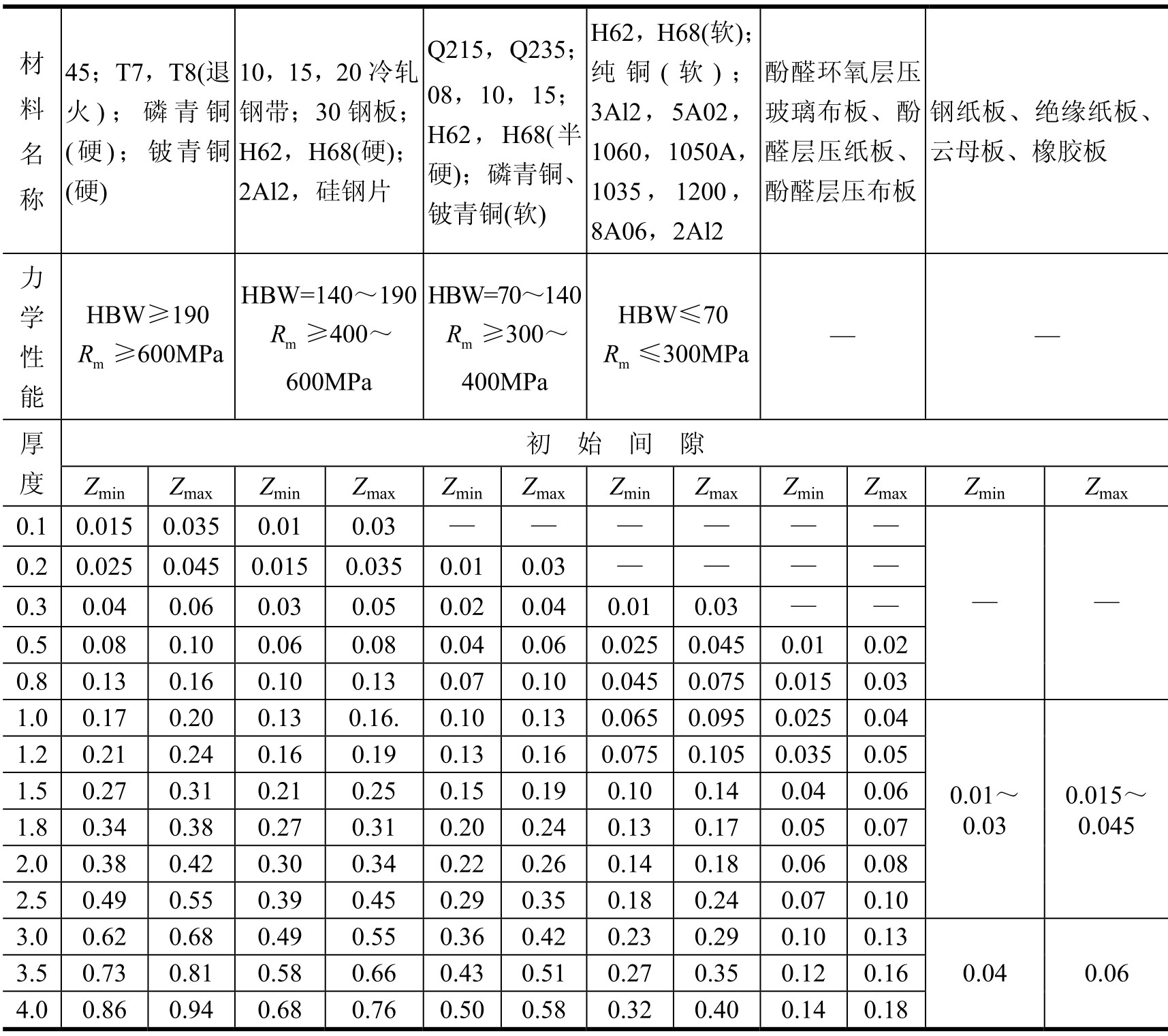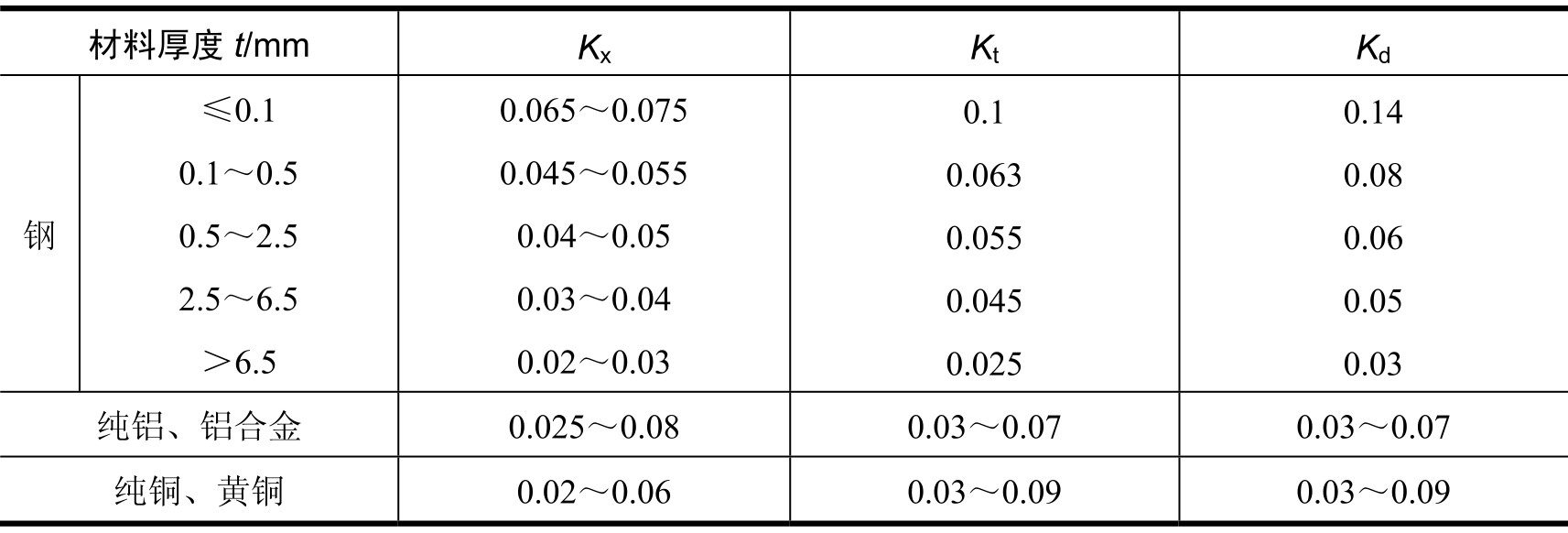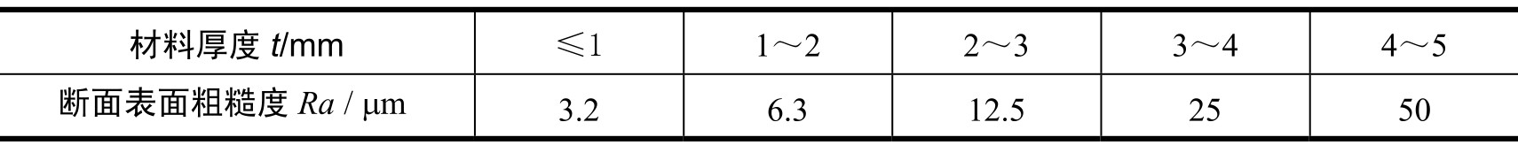 (2)断面表面粗糙度。冲裁件的断面粗糙度一般为 Ra =12.5~50μm,最高为 Ra =50μm,见表2-7。