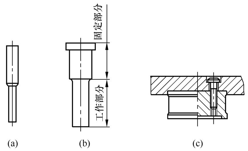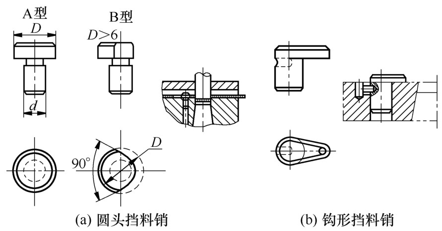 定位零件指保证条料或毛坯在模具中的位置正确的零件。包括:导料板、挡料销、导正销、侧刃、固定板(半成品的定位)等。