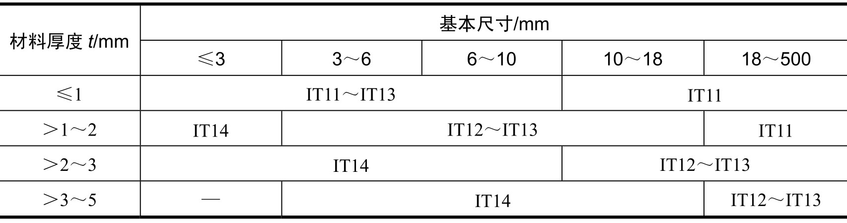 非金属冲裁件内、外形的经济精度为IT14、IT15级。