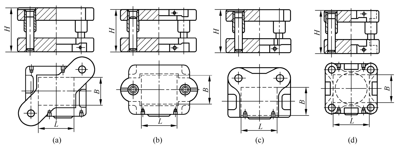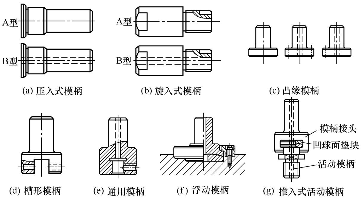 连接固定类零件是指将凸、凹模固定于上、下模座以及将上、下模座固定在压力机上的零件。如固定板(凸模、凹模),上、下模座,模柄,推板,紧固件等。