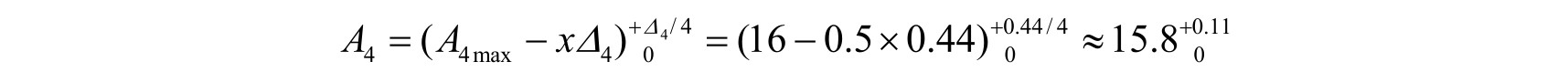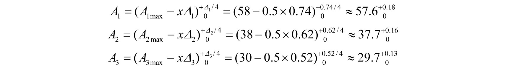 查表2-15,确定所有尺寸的磨损系数均为 x =0.5。落料刃口尺寸均为A类尺寸,取 δ d = Δ /4,按式(2-12)得到