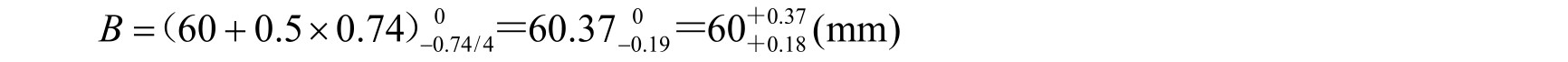(2)计算落料刃口尺寸。采用配制加工,刃口尺寸以凹模为基准,凸模尺寸按相应的凹模实际尺寸进行配制,保证双面间隙为0.22~0.26mm。