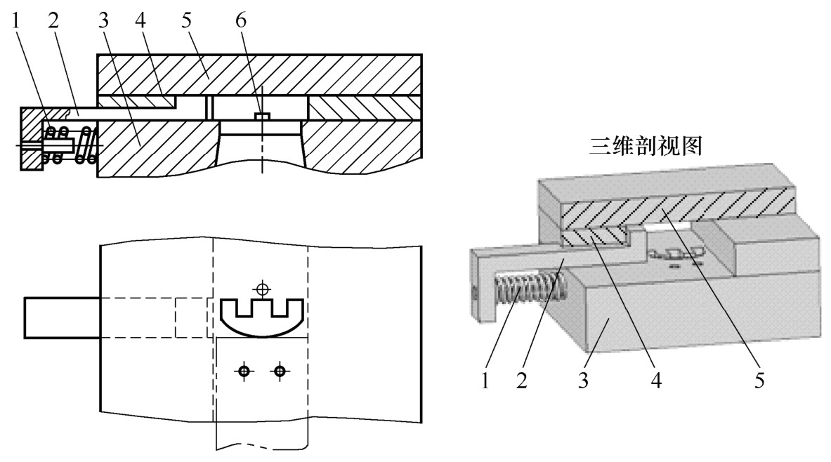 卸料及推件零件指将冲裁后由于弹性回复而卡在凹模孔口内或紧箍在凸模上的工件或废料脱卸下来的零件。