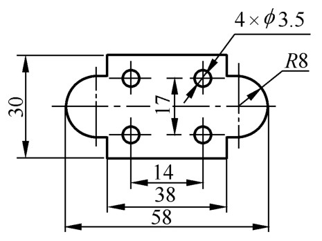 (3)计算冲孔刃口尺寸。仍采用配制加工,刃口尺寸以凸模为基准,凹模尺寸按相应的凹模实际尺寸进行配制,保证双面间隙为0.22~0.26mm。