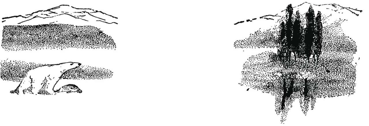于是这些白色兔子和白色松鸡就要使用妙计了:它们换掉白色的外衣,变成其他颜色。兔子浑身上下都变成了灰色,松鸡身上许多地方的白色羽毛脱落了,在这些地方长出了带黑色条纹的棕色和褐色的新羽毛。现在兔子和松鸡不容易被发现了:它们伪装起来了。