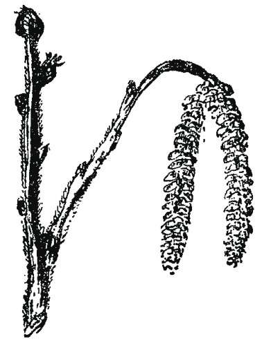 一根根灰色的小尾巴从树枝上弯曲着垂下来,它们被称作穗状花序,但它们跟穗状花序并不相像。你摇动一下这个小尾巴——从它上面就会有一些花粉落下来。