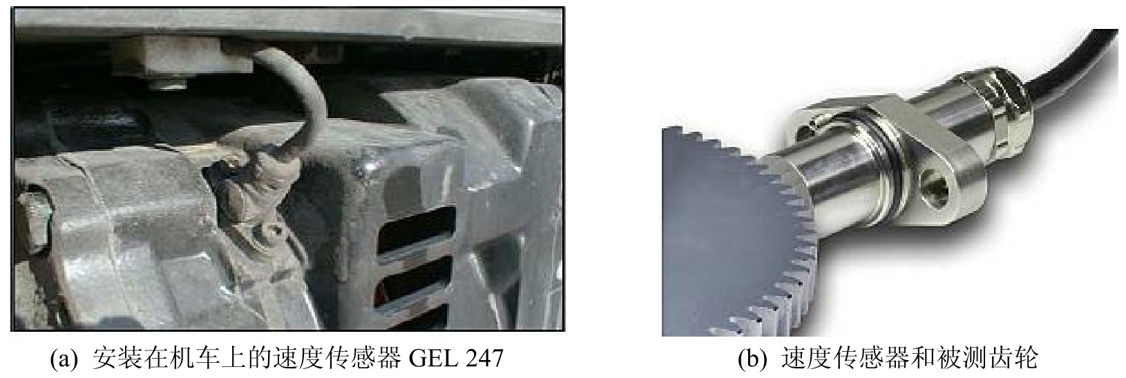 最常用的速度传感器类型是双通道速度传感器,如图2.39所示。该传感器直接扫描机车电机轴上或减速机上的齿轮,因此,传感器本身不需要带轴承。