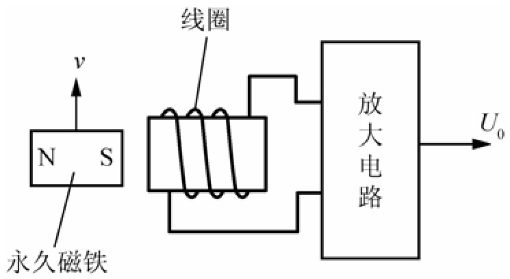 根据电磁感应定律,当永久磁铁从线圈旁边经过时,线圈便会产生一个感应电势。如果磁铁经过的路径不变,那么这个感应脉冲的电压峰值与磁铁运动的速度成正比。因此,我们可以通过这个脉冲电压的峰值来确定永久磁铁的运动速度。把永久磁铁固定在被测物体上就可测得物体的运动速度。