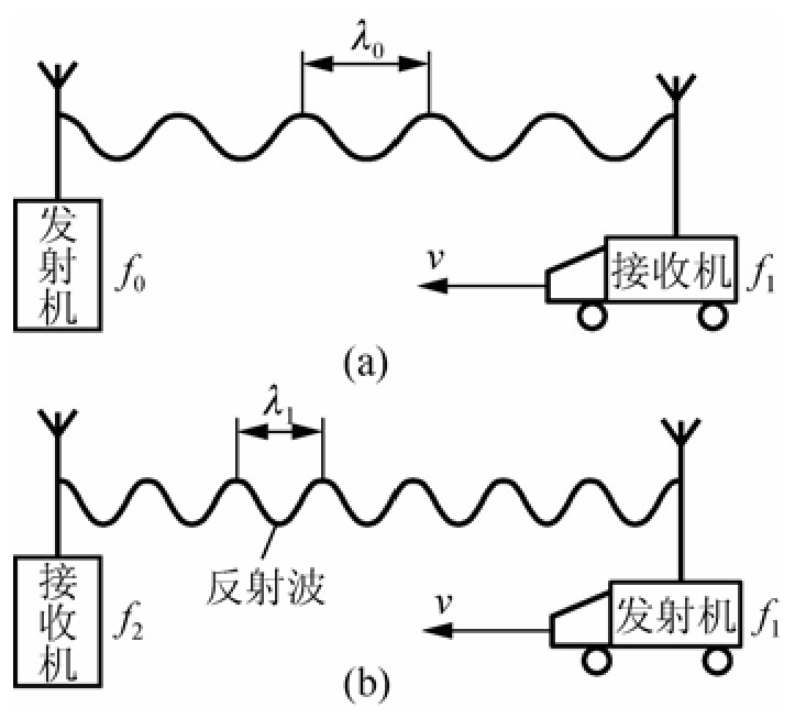 如果把 f 1 作为反射波向接收机发射信号,如图2.32(b)所示。接收机接收到的信号频率为
