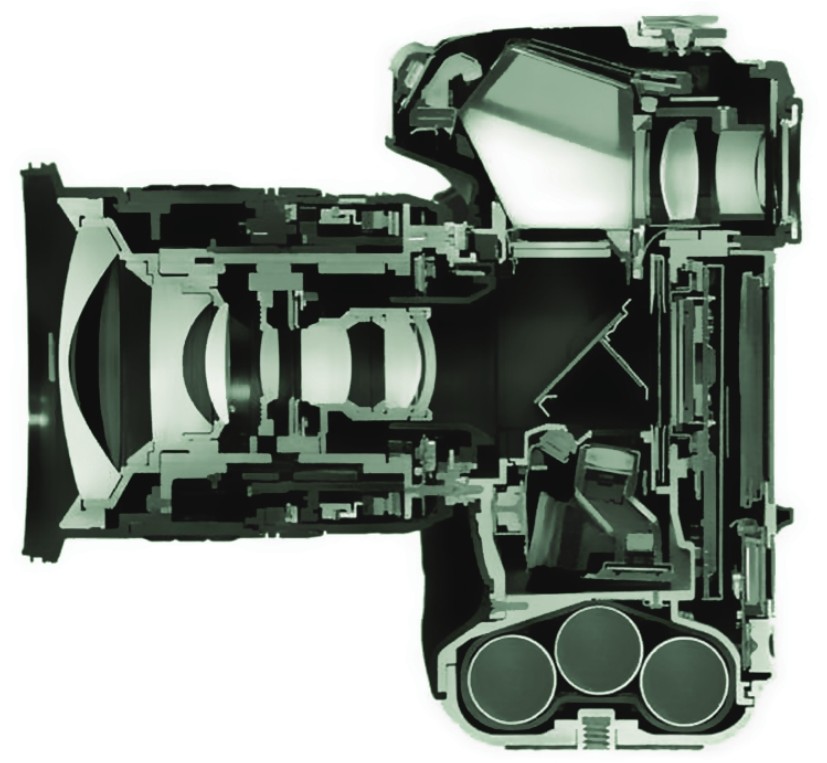 相机的剖面图,从中我们可以看到与前面成像示意图差不多的结构。