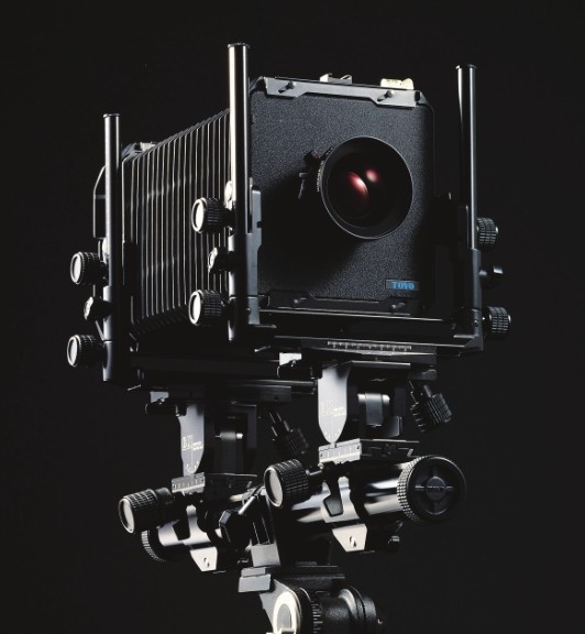 大画幅相机镜头架和镜头沿单轨轨道或折叠基板滑动调节伸缩皮腔,可达到聚集效果。